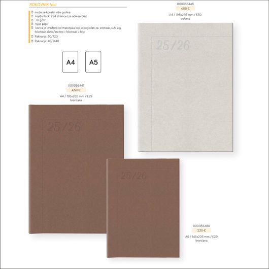 • korica je izrađena od materijala koji je pogodan za: sitotisak, suhi žig,