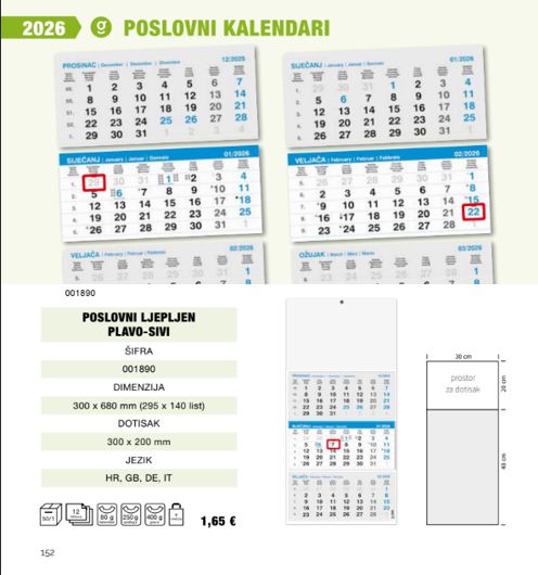 Poslovni SIVO-PLAVI iz tri dijela ljepljeni, trodjelni 2026.